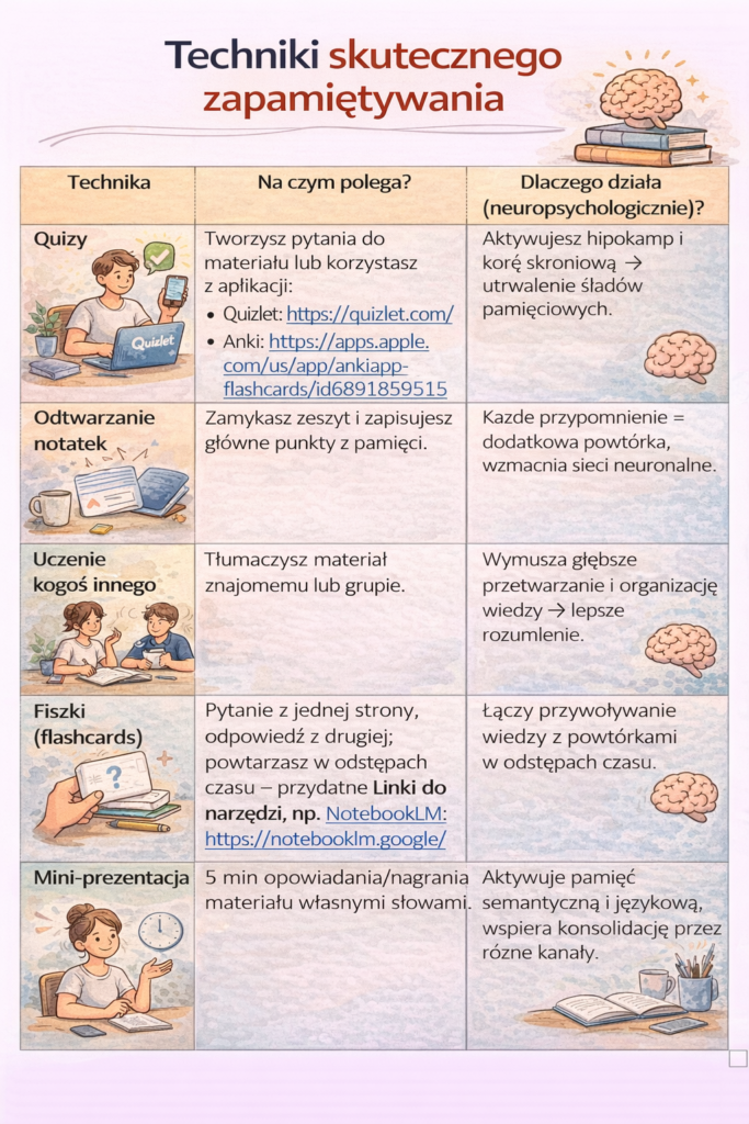 W poszczególnych materiałach znajdują się krótkie, oparte na badaniach psychologicznych i neuropsychologicznych omówienia najważniejszych obszarów wspierających dobrostan studentów. Każdy z nich zawiera praktyczne wskazówki, przykłady sytuacji z życia studenckiego oraz proste strategie, które można stopniowo wprowadzać w codziennym funkcjonowaniu.